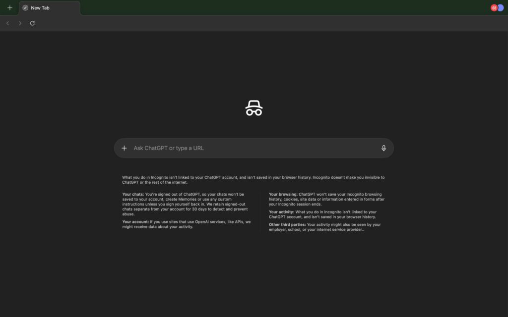 An Incognito Mode is also available, which logs you out of ChatGPT and stops the memory system from saving anything.