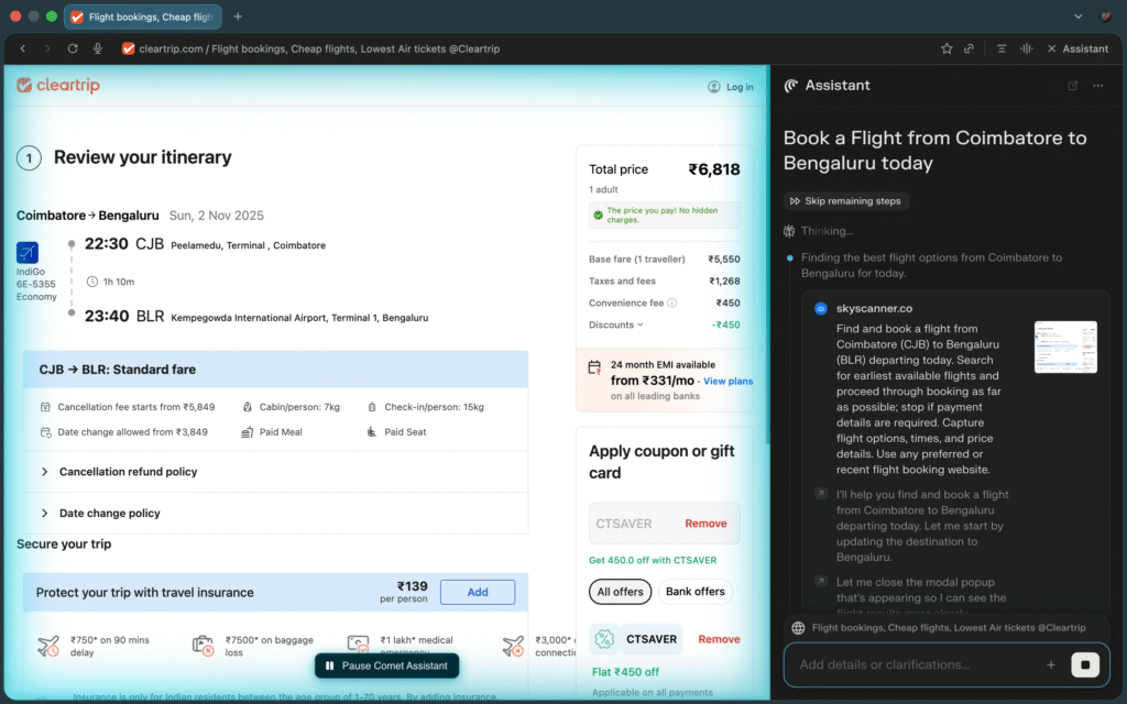 However, the system is not perfect yet. Many websites use complex forms, unusual login flows, or dynamic elements that can confuse an automated agent. Because of this, Comet may misclick, get stuck on unusual payment pages, or take longer than doing the task manually.